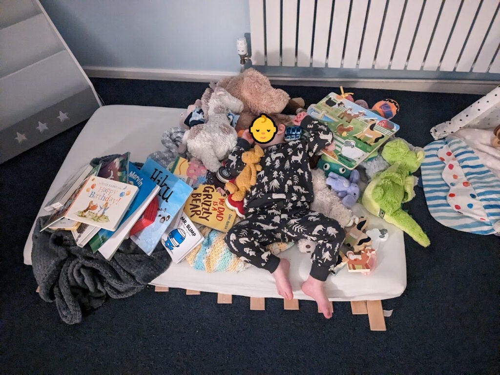 One further benefit was that the floor bed helped them to get used to there being a drop at the edge of the bed. After we removed the roll barriers, they initially rolled out of bed at some point on most nights (though this didn’t usually wake them). This quite quickly became more of a rarity though, and by age 2 we were comfortable putting them in a standard bed, raised off the floor.